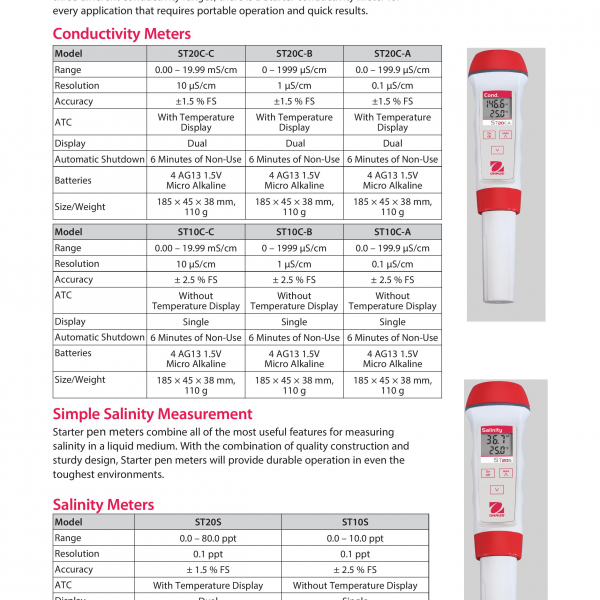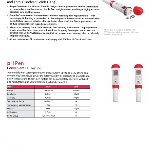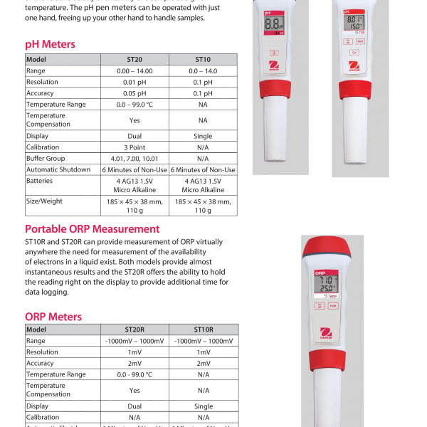 OHAUS pen meters provide accurate measurement of pH, oxidation-reduction p otential (ORP), conductivity, salinity and total dissolved solids (TDS).