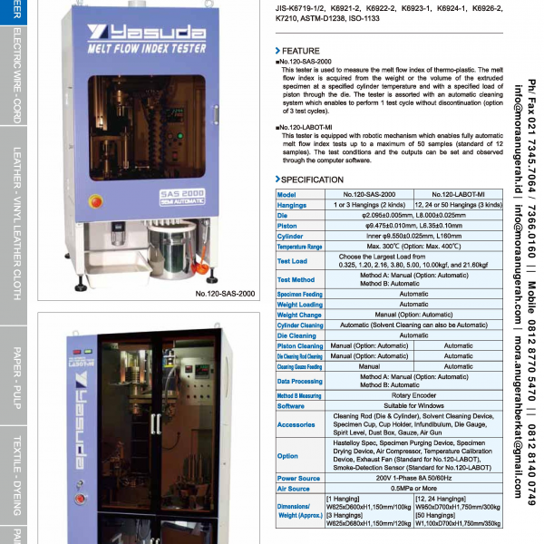 | No.120-SAS MELT FLOW INDEX TESTER (Automatic) | |